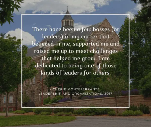 We asked graduates to share their journey to graduation. Here is what Cherie Monteferrante (Leadership and Organizations) had to say in her own words…
